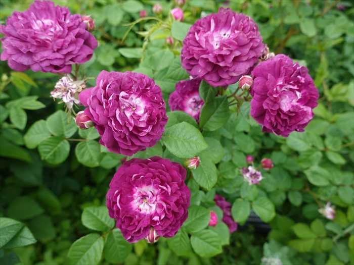 ももっとも青みがかる紫色が楽しめます。オールドローズの中でも大変よく知られ、知名度に