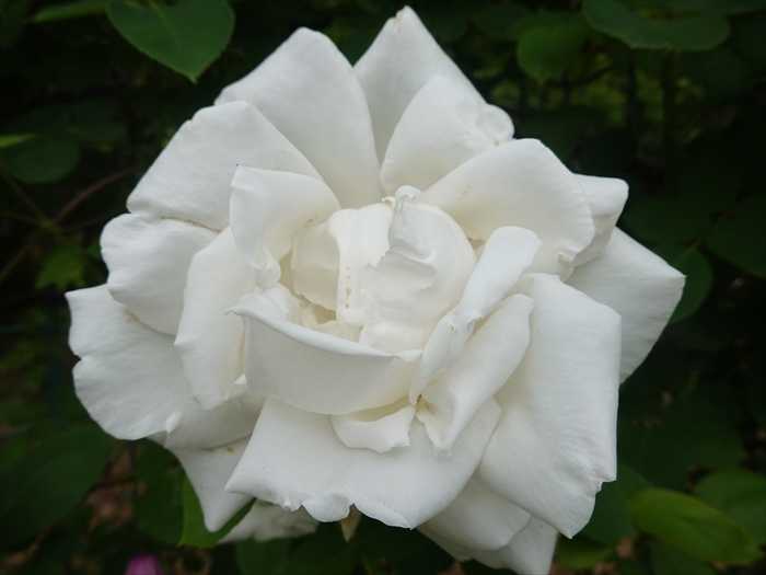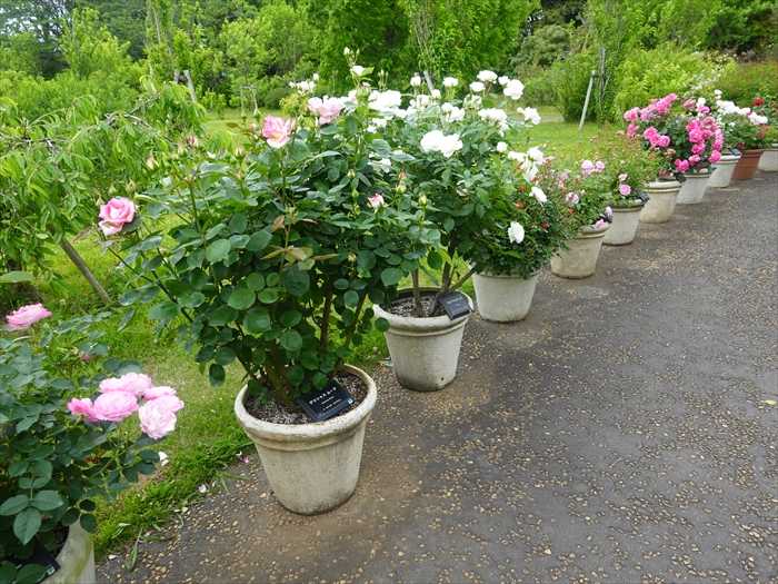 特徴はやはりその輝くような白さと、気品ある花型でしょうか。花つきも非常に良好で、