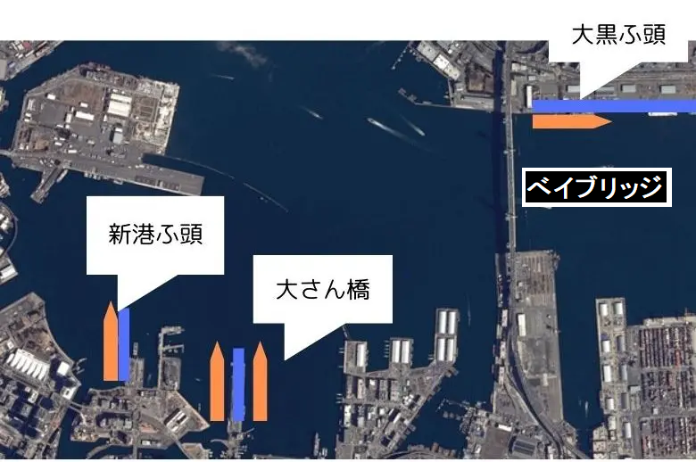 くぐれない船を迎え入れる際は、大さん橋ふ頭ではなく、大黒ふ頭を利用