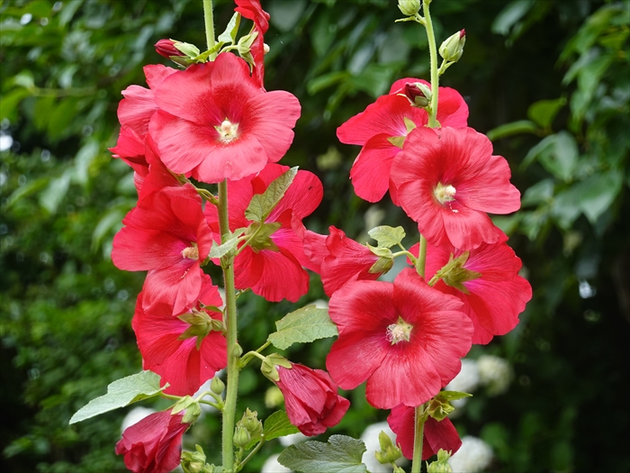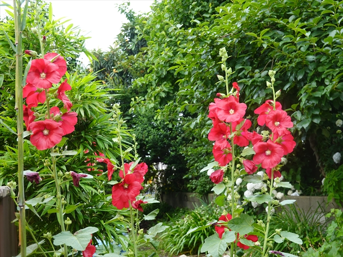 「ツユアオイ(梅雨葵)」という別名も冠されている。花は一重や八重のもあり、色は赤、