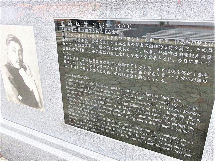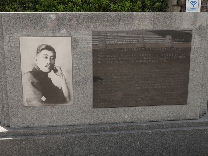 熱海市民は、尾崎紅葉先生の業績に感謝するとともに、その遺徳を偲び「金色夜叉」の