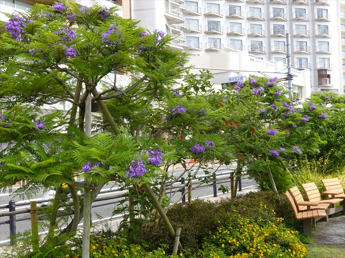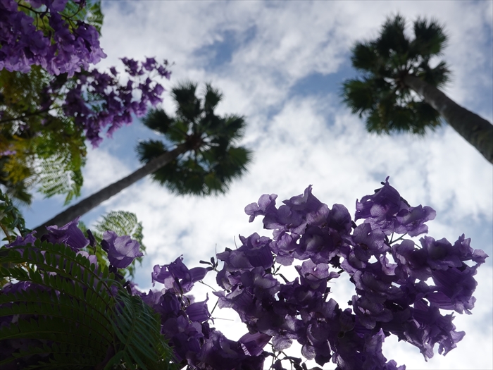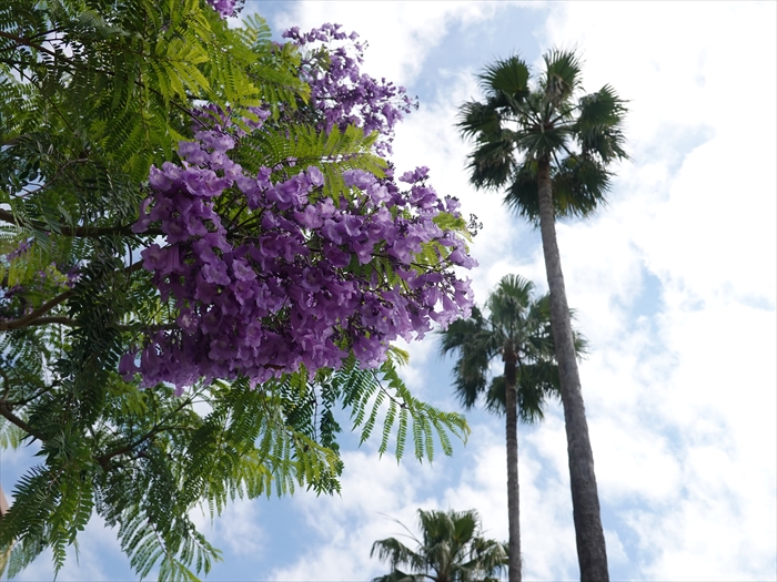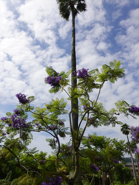 椰子の並木と「ジャカランダ」のコラボ。