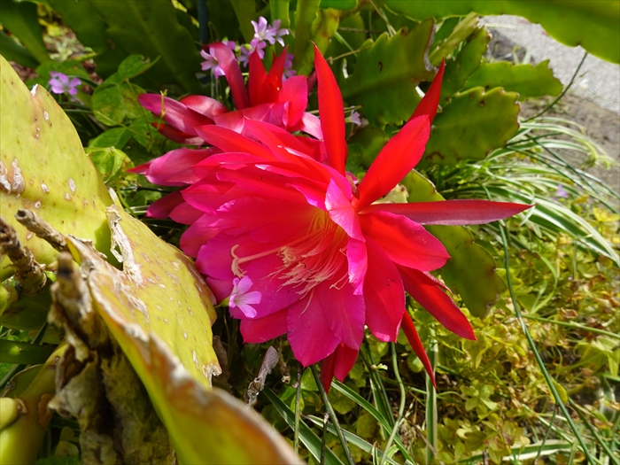クジャクサボテンの真っ赤な花