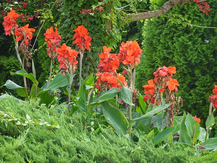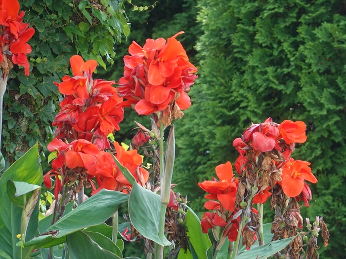 こちらは 朱色のカンナの花