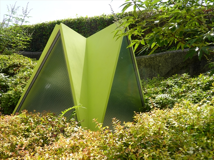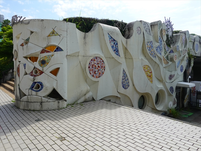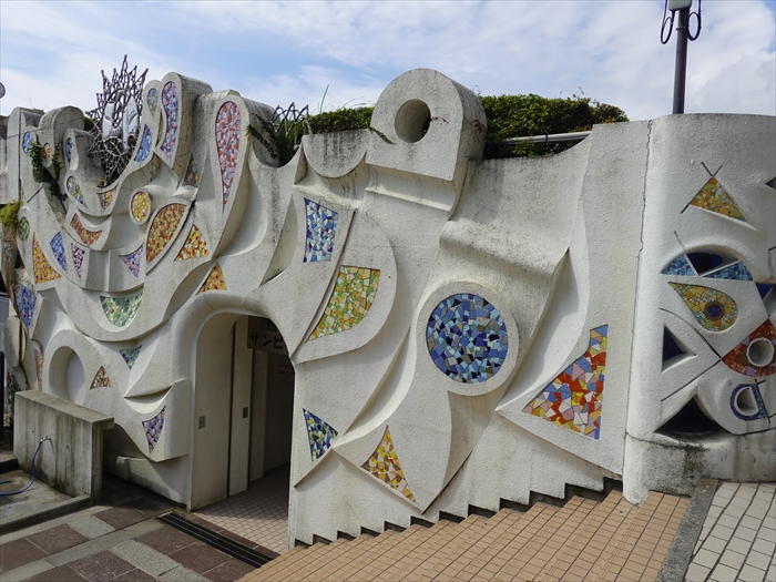 ジャカランダ遊歩道から駐車場へ下る石段の壁のステンドグラス風の色彩が美しかった。
