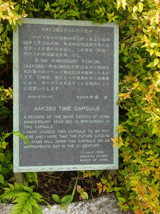 このカプセルは昭和59年10月1日より昭和60年3月30日の間、熱海梅園開園百年等の記念すべき