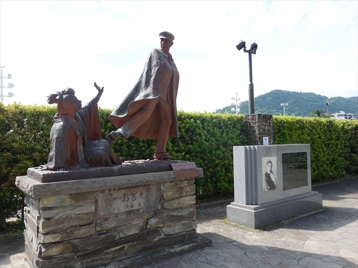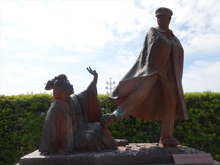 心変わりの許しを請うお宮と、それを足蹴にする貫一の姿の像が。