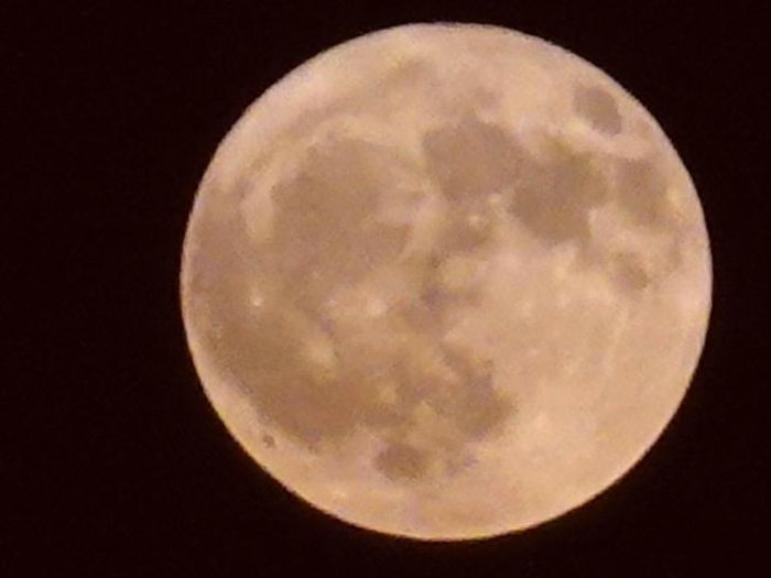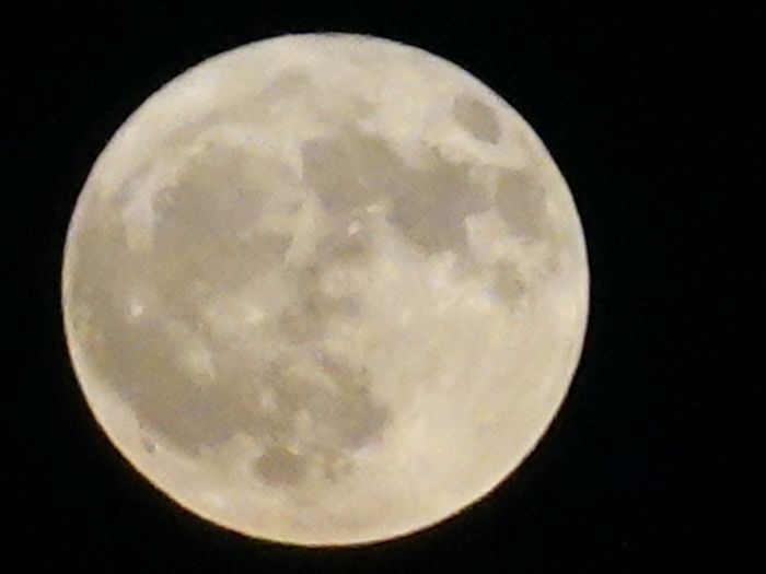 そしてこの日の、月の出直後の 赤い満月をさらにズームしてみました