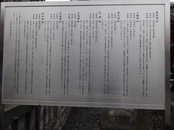 江戸時代に勧請された、右の神々は、関東大震災・戦災により社殿を消失し、以来神田神社の