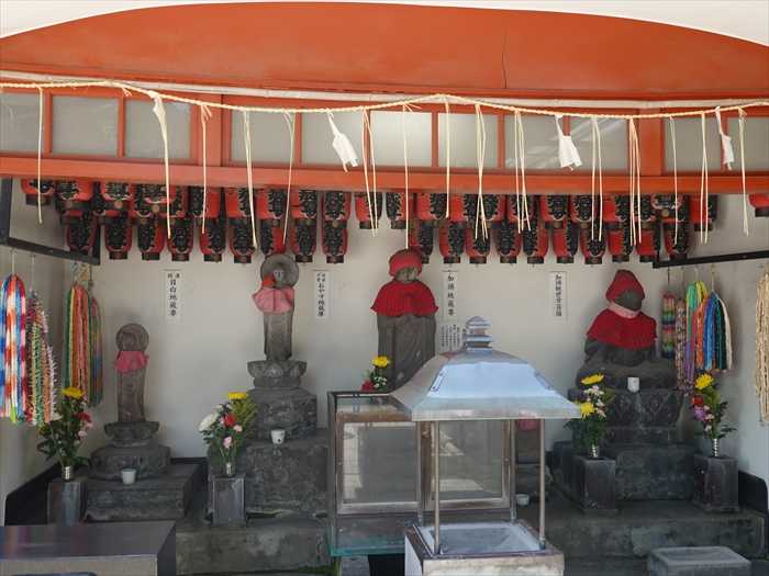 向かって左から、開運 目白地蔵尊、出世・子育 おやす地蔵尊、加頭地蔵尊(かとうじぞうそん)、