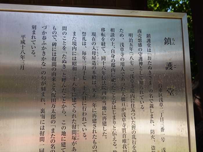 明治五年(一八七二)、浅草寺境内に住みついた狸の乱行を鎮めるため、浅草寺の用人であった