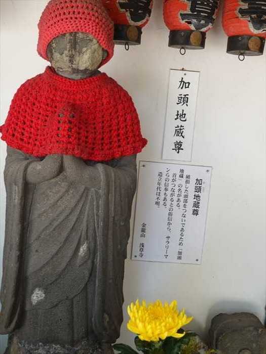 破損した頭部をつないであるため「加頭地蔵」の名がある。「首がつながる」との俗信から、