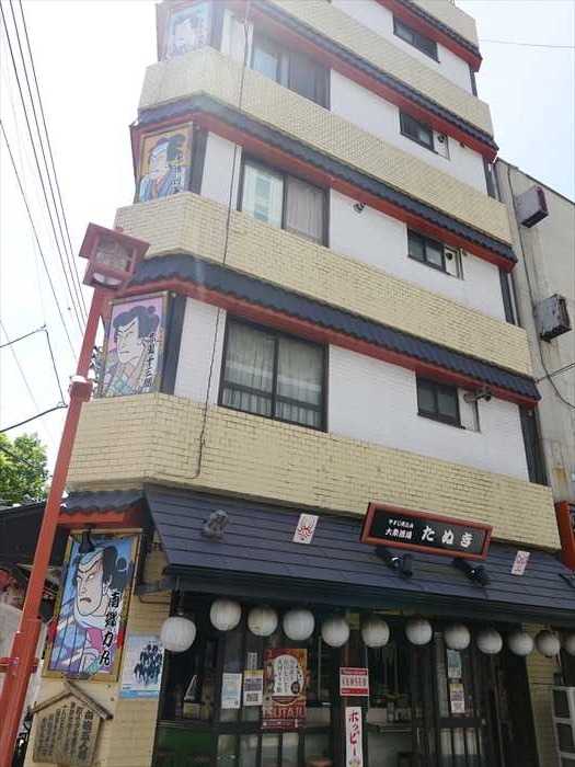 「奥山おまいりまち」と「ホッピー通り」の角にあった「大衆酒場 たぬき」。