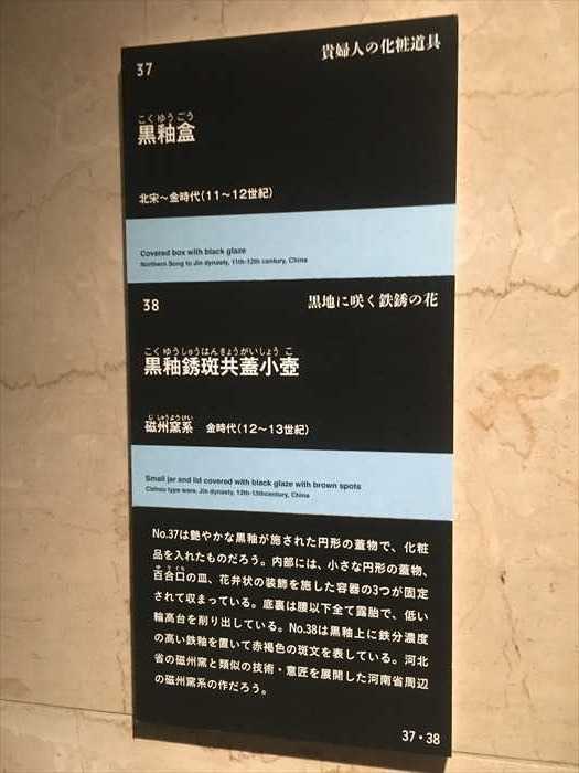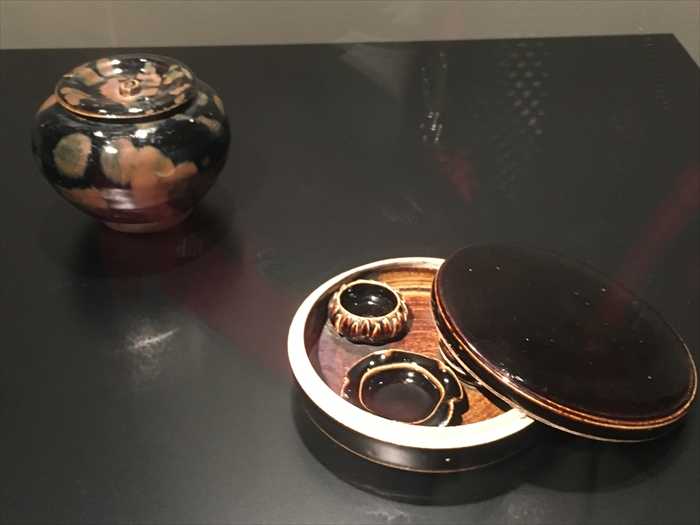 No. 37は艶やかな黒釉が施された円形の蓋物で、化粧品を入れたものだろう。内部には、小さな