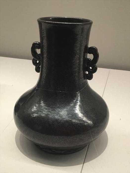 総体に光沢のある釉主彩の黒釉が施され、黒塗りの無文添器にも似た趣がある。清朝・雍正年間の