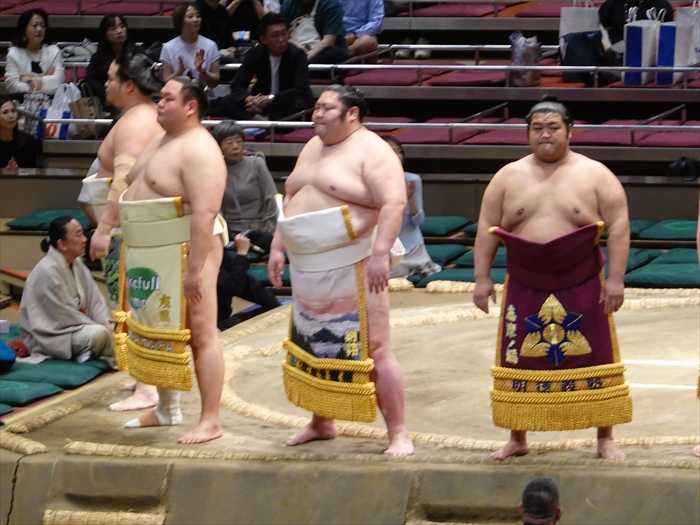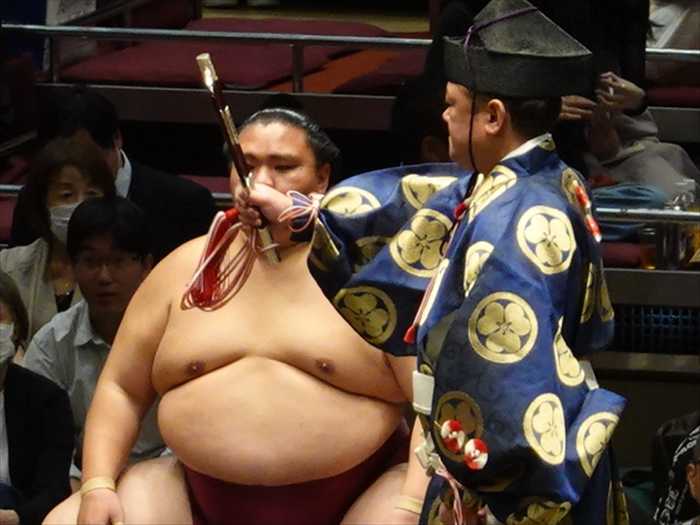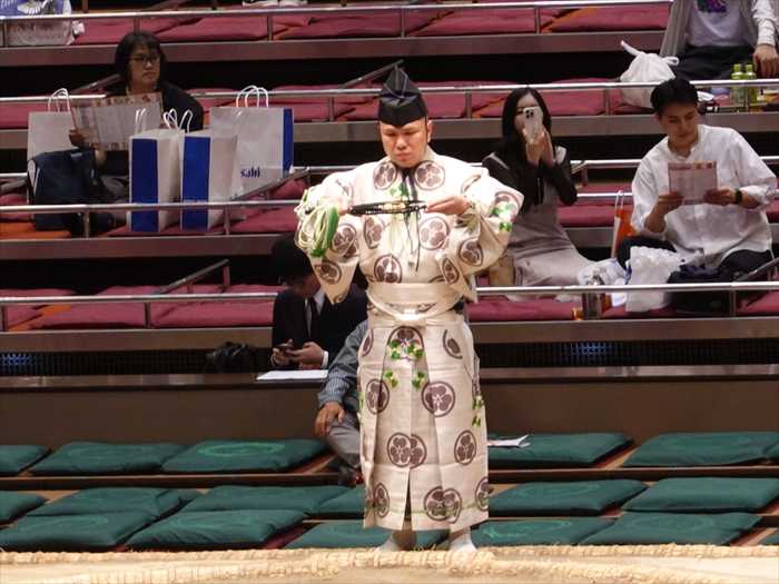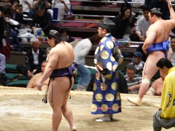 十両格の行司は、土俵上では草履を履くことが許されていない ようだ。