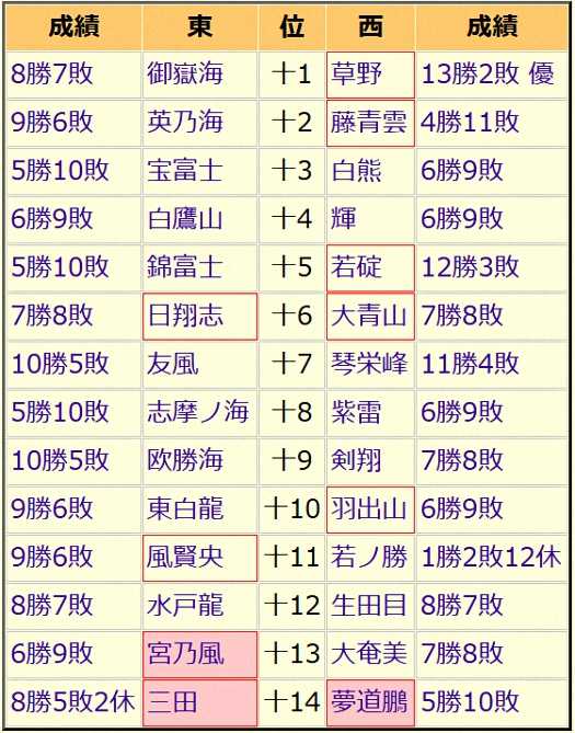 今場所は 十両筆頭まで下がったが、8勝7敗で勝ち越し、幕内に復帰の予想。