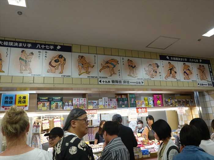 1階売店の正面上には「​ 大相撲決まり手 八十七手 ​」👈️リンクが描かれていた。