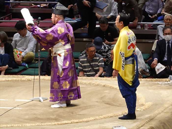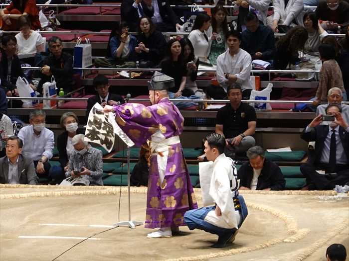 立行司や三役行司が土俵上で次の日の取組を読み上げ 、翌日の来場を呼び掛ける