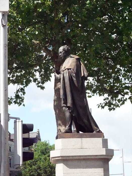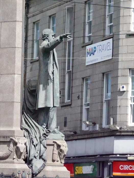 中央に立つパーネルの像(堂々と片手を掲げて演説している姿)