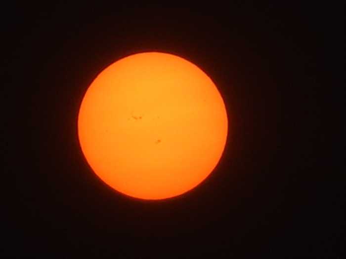 日の出直後の 真っ赤な太陽 をズームして。