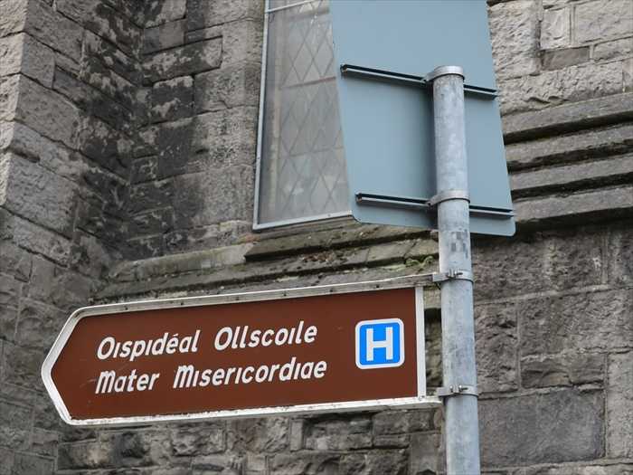 Mater Misericordiae Hospital(マーテル・ミゼリコルディエ病院) 」の案内板。