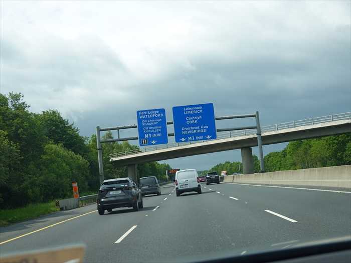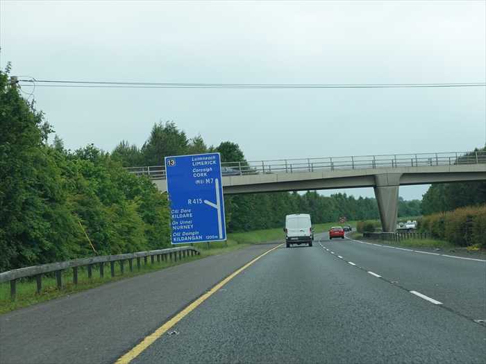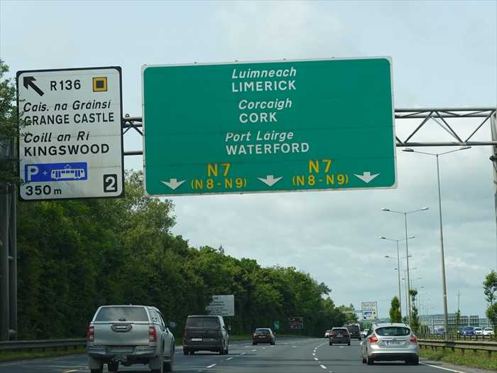 アイルランドの道路標識では、 Mは高速道路、Nは一般道路、Rは地方道路、Lは田舎道路