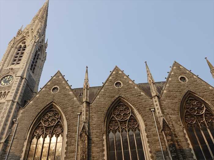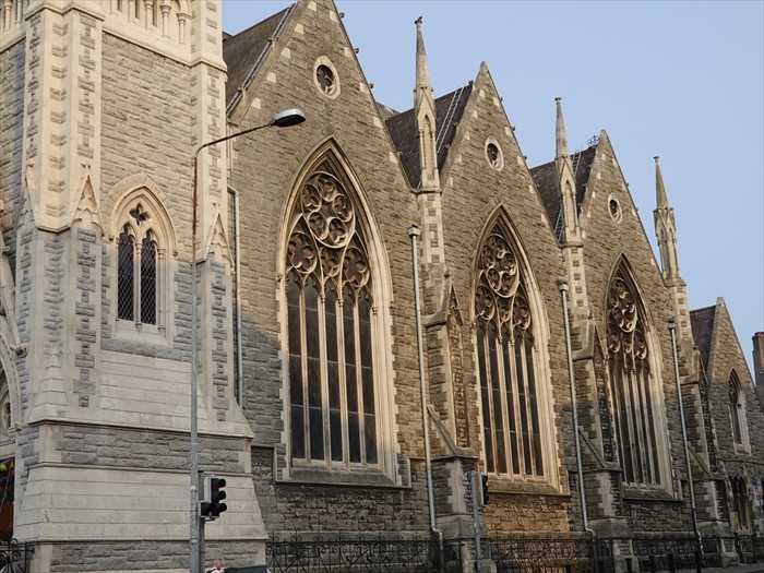 別名フィンドレイター教会。この印象的なゴシック様式の建物は、パーネル スクエアの北角に