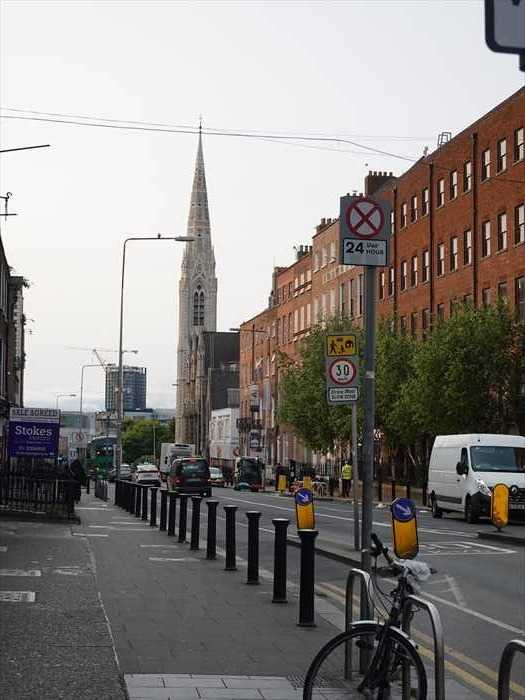 右側の路地の奥に St. George's Churchの尖塔