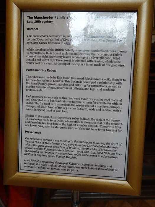 Lord Nicholas requested the help of Kylemore Abbey in obtaining and preserving these robes and coronet, and the Abbey is honoured to have these objects on permanent exhibition for the next six years.