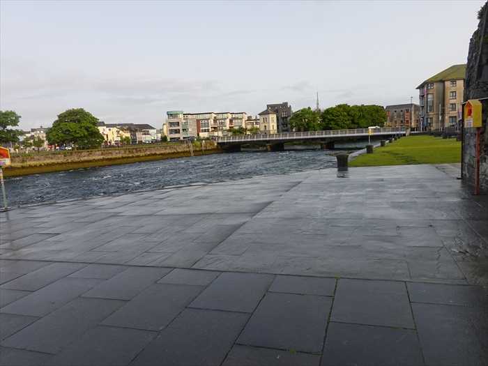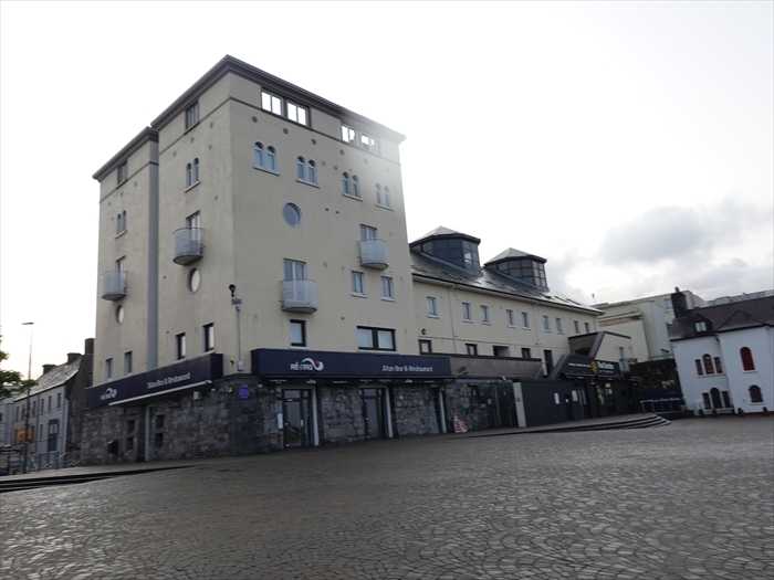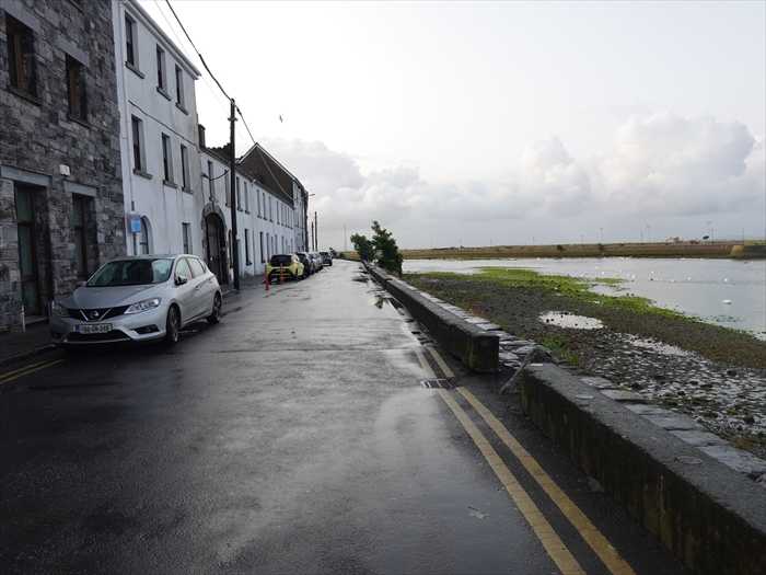 前方の道が「The Long Walk」。 「The Long Walk(ロング・ウォーク)」は、アイルランド・ゴールウェイ市の中心部、 スペイン・アーチ(Spanish Arch)のすぐ西側から始まり、ゴールウェイ湾(Galway Bay) に沿って続く短いが非常に風光明媚な海辺の遊歩道。 ゴールウェイを代表する散策スポットとして、地元の人々や観光客に愛されているのだ と。
