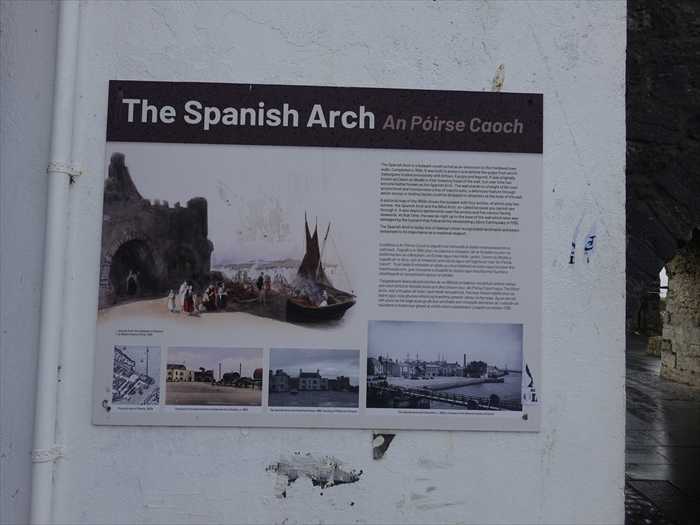 スパニッシュ・アーチは、中世の城壁を延長する形で築かれた防御のための建造物です。 1584年に完成し、波止場の拡張区域を外敵から守る目的で建設されました。もともとは Ceann an Bhalla(壁の端)というアイルランド語で知られていましたが、後に 「スパニッシュ・アーチ」の名で広く知られるようになりました。その由来は明確では ありませんが、ゴールウェイがスペインと強い交易関係を持っていたことを反映していると 考えられています。