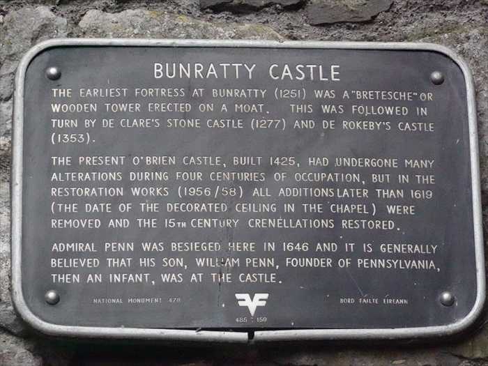 The earliest fortress at Bunratty (1251) was a “bretesche” or wooden tower erected