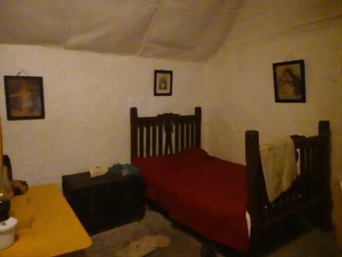 壁には宗教画や家族写真と思われる額縁が3点掲げられており、アイルランド人家庭の深い