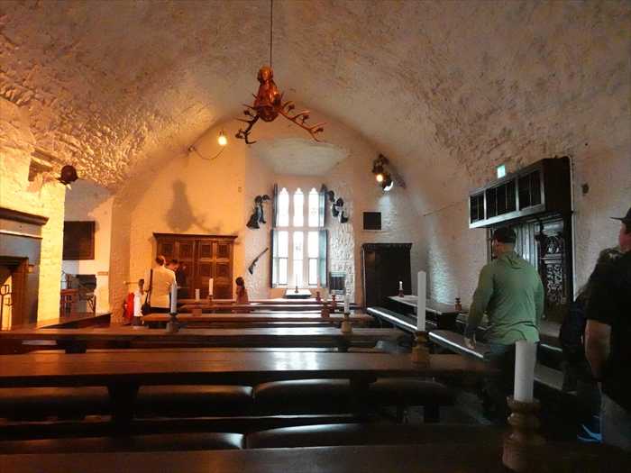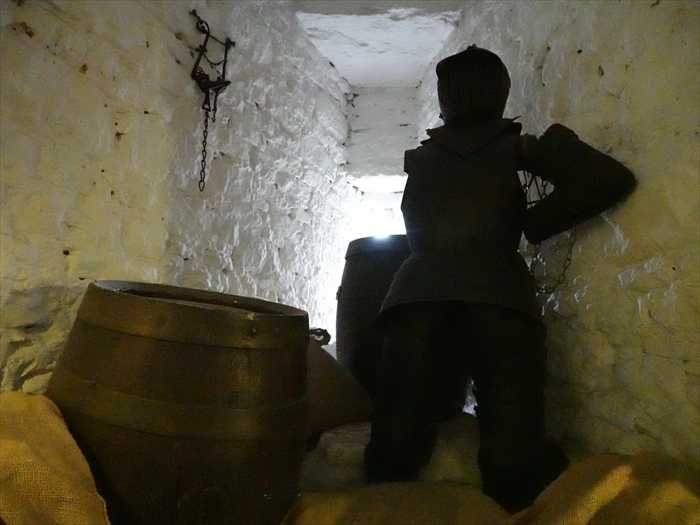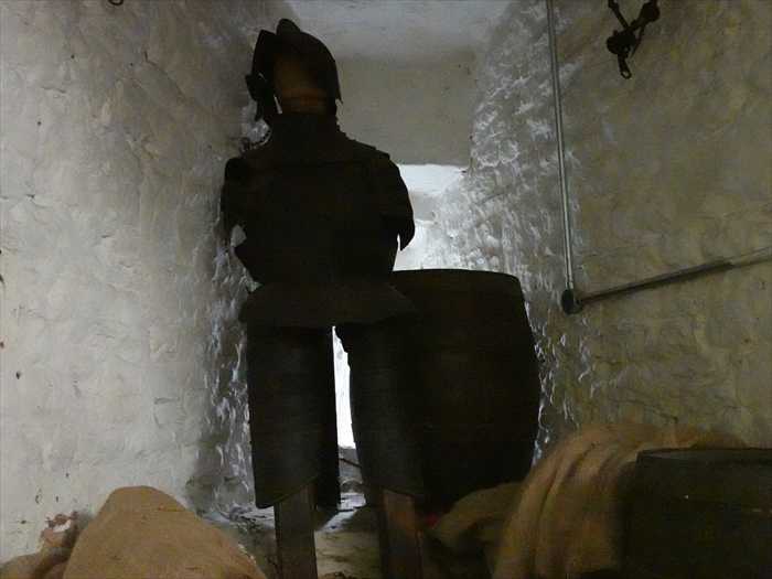 A narrow stone stairs leads up from the basement to the Main Guard Hall, through the wall under the drawbridge, but this is far too narrow for everyday use. Modern visitors have to use the drawbridge to reach the Main Guard Hall.