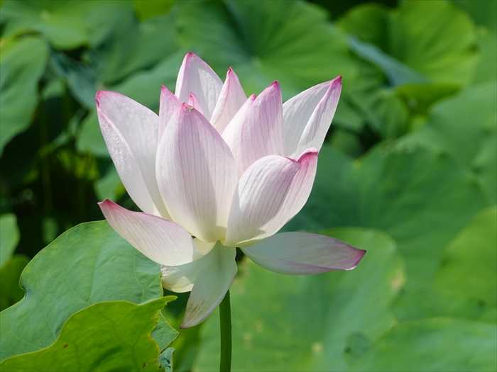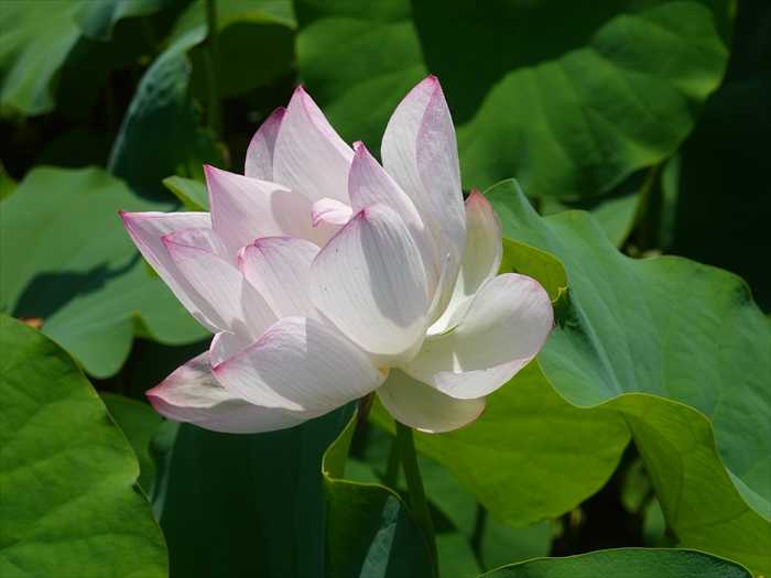 ほんのりピンク色が儚く美しい舞妃蓮(まいひれん)。