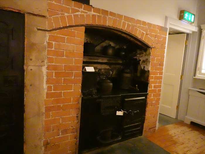 煉瓦でアーチ状に囲まれた開口部にレンジがはめ込まれており、暖炉と調理機能を兼ねた