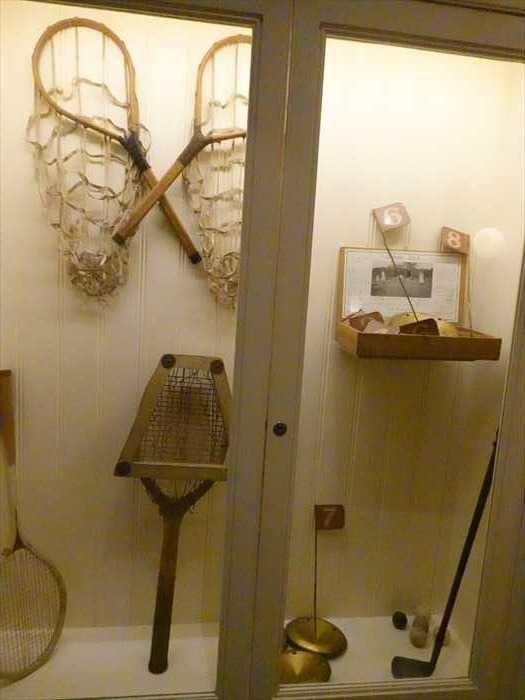 クロッケット(Croquet)の用具 が展示されているガラスケース。