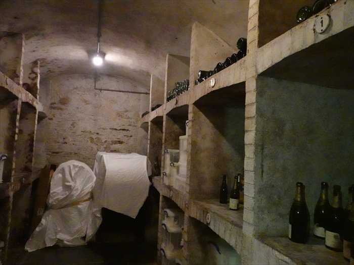 アーチ型の天井で、石造りで湿度が保たれるように設計 されており、ワイン貯蔵に適した環境。