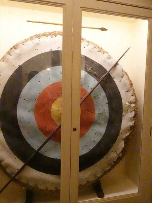 色の構成 :黄色(中心)→赤→青→黒→白という5色同心円は、 イギリス式ターゲットに典型的