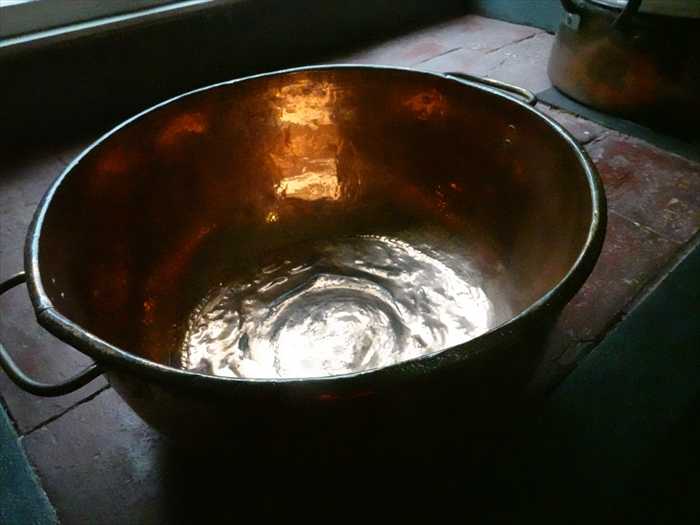 銅製の大鍋(copper cauldron or copper jam pan) に近づいて。