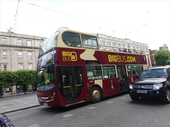 ダブリン市内を走る2階建て(上部は屋根なし=オープントップバス)の