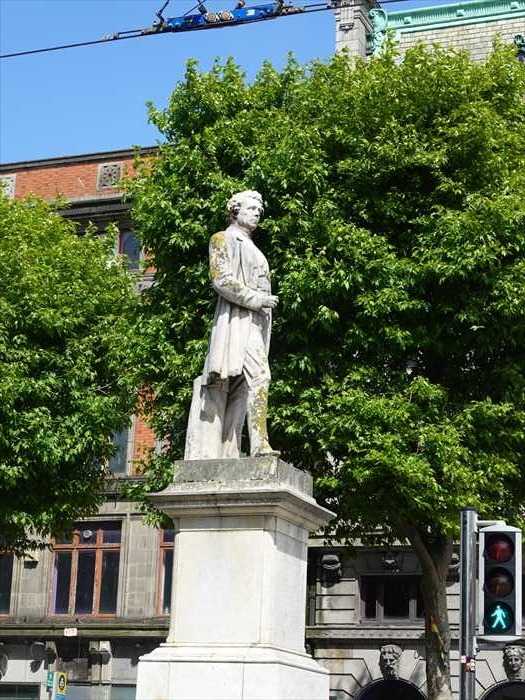 銅像の位置: ダブリン市内、トリニティ・カレッジ正門近く(College Green)