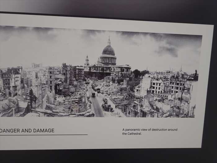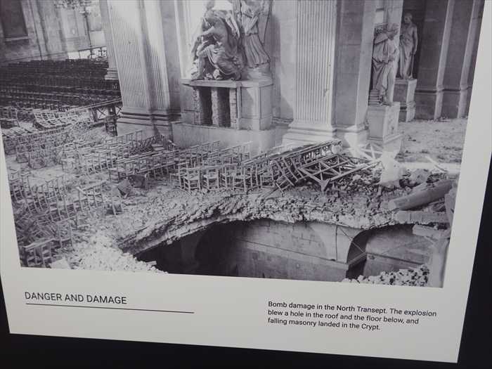 この写真は、第二次世界大戦中の空襲でセント・ポール大聖堂が受けた被害の一部を示しており、