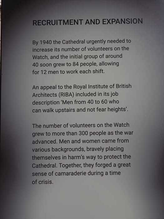 1940年までに、大聖堂は「見張り隊(Watch)」のボランティアを急いで増やす必要があった。