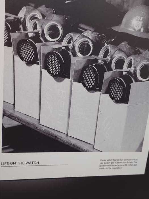 「It was widely feared that Germany would use poison gas in attacks on Britain. The government produced almost 38 million gas masks for the population.」