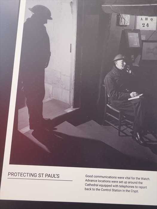 「Good communications were vital for the Watch. Advance locations were set up around the Cathedral equipped with telephones to report back to the Control Station in the Crypt.」