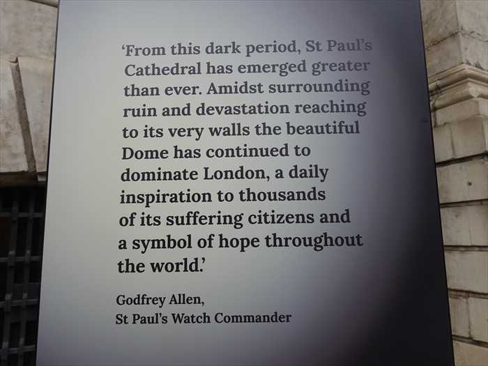 「‘From this dark period, St Paul’s Cathedral has emerged greater than ever. Amidst surrounding ruin and devastation reaching to its very walls the beautiful Dome has continued to dominate London, a daily inspiration to thousands of its suffering citizens and a symbol of hope throughout the world.’