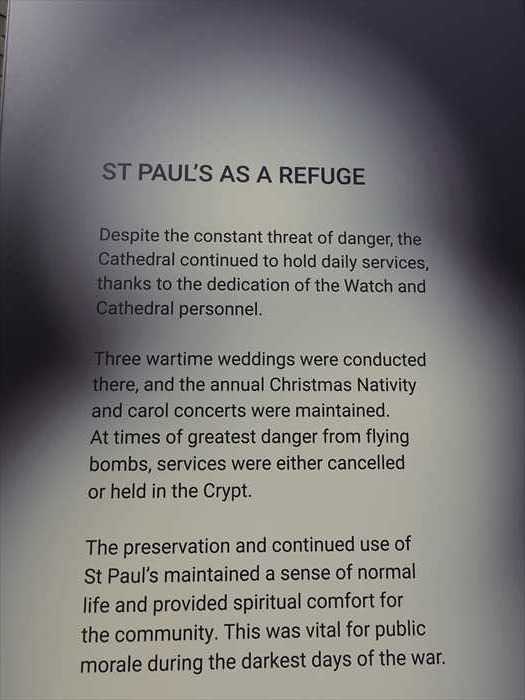 The preservation and continued use of St Paul’s maintained a sense of normal life and provided spiritual comfort for the community. This was vital for public morale during the darkest days of the war.」