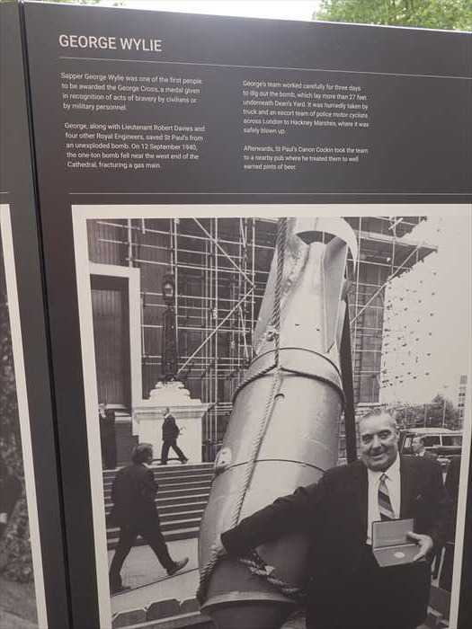 Together with Lieutenant Robert Davies and four other Royal Engineers, George helped save St Paul’s from an unexploded bomb. On 12 September 1940, a one-ton bomb struck near the Cathedral’s west end, also breaking a gas main.